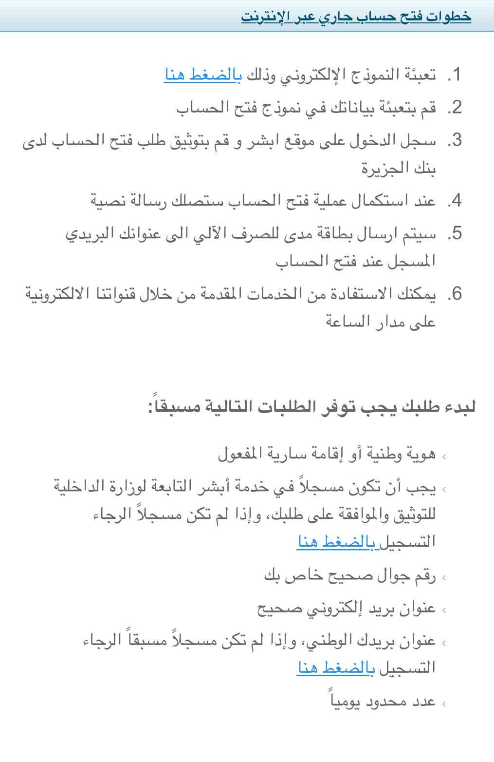 فتح حساب في بنك الجزيرة اون لاين