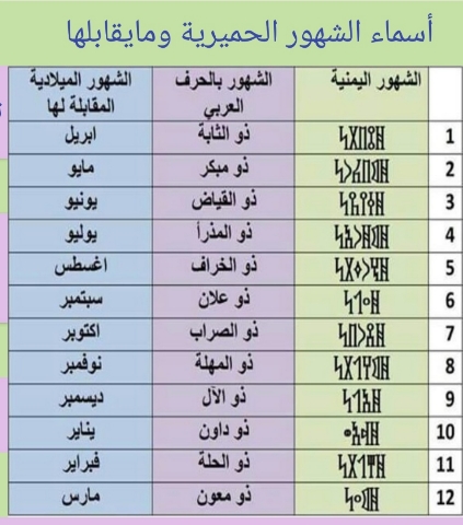 التقويم الحميري وأسماء ومعاني الشهور الحميرية وما يقابلها