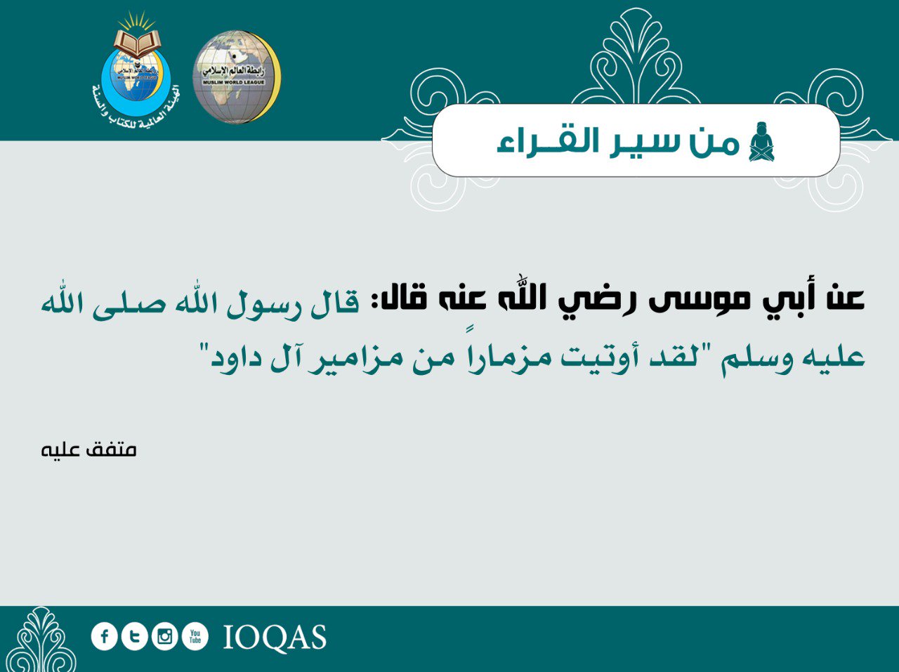 الوحيين On Twitter عن أبي موسى رضي الله عنه قال قال رسول الله صلى الله عليه وسلم لقد أوتيت مزمارا من مزامير آل داود متفق عليه