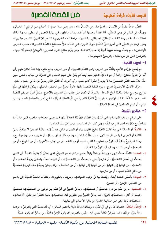 درس فن القصة القصيرة في اللغة العربية للصف الحادي عشر الفصل الثاني